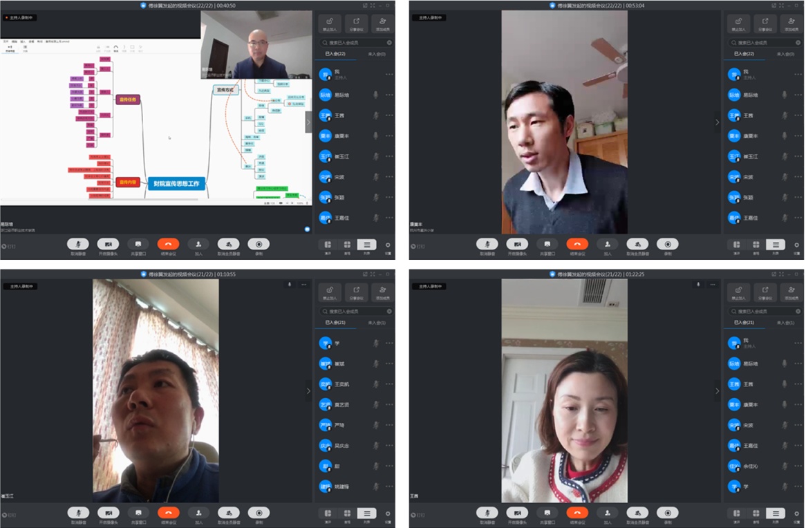 为深入学习贯彻中央和全省宣传思想工作会议精神,落实学校党委有关要求,进一步解放思想,凝心聚力,围绕学校中心工作,做好2020年的宣传思想和意识形态工作。2月25日,财会金融学院通过钉钉视频会议形式,召开了2020年宣传思想和意识形态工作会议,本次会议的主题是“传播正能量 展示新形象”,分院党总支委员会委员、党支部委员、各岗位主管、行政教辅管理人员共计22人参加了此次会议,会议由党总支副书记康粟丰主持。