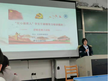 2020年12月16日18:00,财会金融学院在红雨楼1401教室开展了“红心接班人”学生干部领导力训练营的第三次培训。本次培训的主讲人是财会金融学院辅导员董蓉蓉老师。