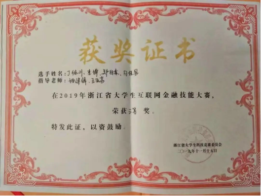 2019年浙江省大学生互联网金融技能大赛中荣获三等奖