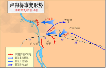 1937年7月7日夜,卢沟桥的日本驻军在未通知中国地方当局的情况下,径自在中国驻军阵地附近举行所谓军事演习,并诡称有一名日军士兵失踪,要求进入北平西南的宛平县城(今卢沟桥镇)搜查,被中国驻军严词拒绝,日军随即向宛平城和卢沟桥发动进攻。中国驻军第29军37师219团奋起还击,进行了顽强的抵抗。卢沟桥事变又称七七事变,全民族抗战由此爆发。