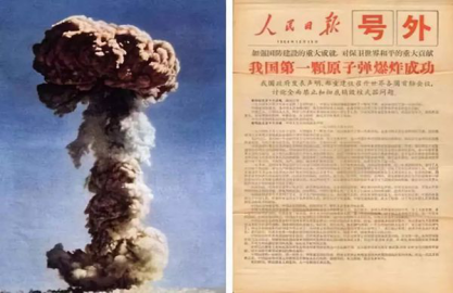 1964年10月16日15时,中国第一颗原子弹在我国西部罗布泊试验场爆炸成功,中国政府同时发表声明,郑重宣布:在任何时候、任何情况下,中国都不会首先使用核武器。中国政府一贯主张全面禁止和彻底销毁核武器,中国进行核试验,发展核武器,是被迫而为的。中国掌握核武器完全是为了防御,是为了免受核威胁。1967年6月17日上午8时,中国第一颗氢弹空爆试验成功;1970年4月24日21时,中国第一颗人造卫星“东方红一号”发射成功,使中国成为第五个发射人造卫星的国家。“两弹一星”研制成功,是中华民族为之自豪的伟大成就。钱学森、钱三强、邓稼先等一大批科学家,把个人理想与祖国命运紧紧联系在一起,把个人志向与民族振兴紧紧联系在一起,将热爱祖国、无私奉献、自力更生、艰苦奋斗、大力协同、勇于登攀的“两弹一星”精神,永久镌刻在中国大地上,成为全国各族人民宝贵的精神财富和不竭的动力源泉。