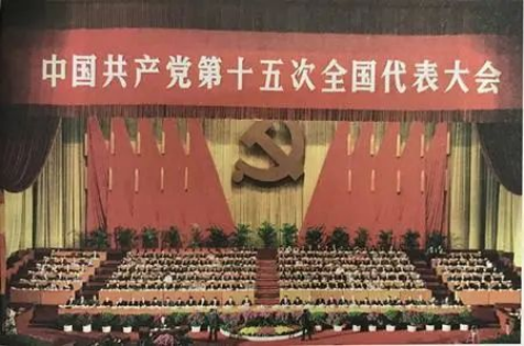 1997年9月12日至18日,中国共产党第十五次全国代表大会在北京举行。江泽民作题为《高举邓小平理论伟大旗帜,把建设有中国特色社会主义事业全面推向二十一世纪》的报告。大会指出,旗帜问题至关紧要。旗帜就是方向,旗帜就是形象。大会首次使用“邓小平理论”这个概念,将邓小平理论同马克思列宁主义、毛泽东思想一起作为党的指导思想写入党章。