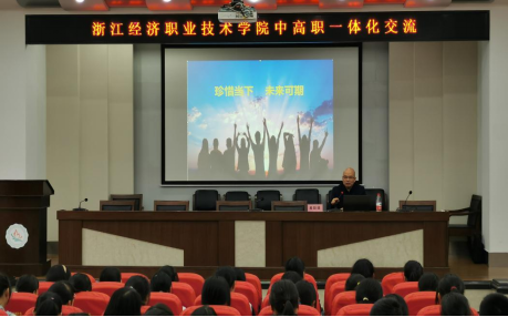 党总支书记易际培为中高职一体化班级学生作了一场题为“珍惜当下、未来可期”的专题讲座。易书记采用互动的形式,通过“读书究竟为了什么?追求成功还是追求优秀?如何立足当下?”等问题与学生探讨,现场学生各抒己见,踊跃参与问答。