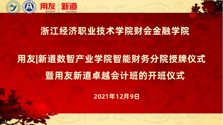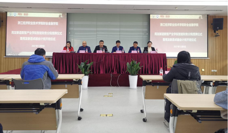 12月9日下午,由华体汇app全站版财会金融学院与浙江用友软件有限公司、新道科技浙江区联合开办的数智产业学院智能财务分院授牌仪式暨“用友|新道卓越会计班”开班仪式圆满举行。