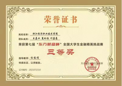 3.2021年12月浙江省第六届金融创新大赛团体三等奖。