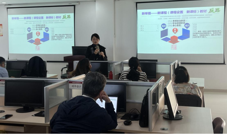 为了持续推进2022“课堂革命年”实施方案落实,加强“课堂革命”典型案例申报工作,5月3日下午在控制科技楼4403跨专业综合实训室,财会金融学院教师党支部“双带头人”工作室邀请职教专家,浙江商业职业技术学院陈强教授为全体专任教师作了一场题为“建设高质量高水平精品课程,提升教师团队综合能力”的讲座。财会金融学院院长王茜、副院长崔玉江,及全体任课教师参加了本次讲座。