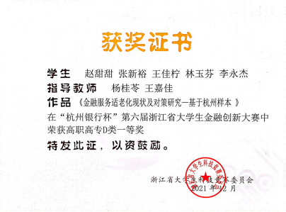 杨桂苓老师指导学生参加省大学生金融创新大赛获奖
