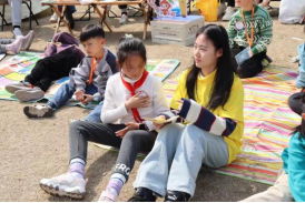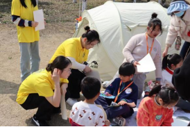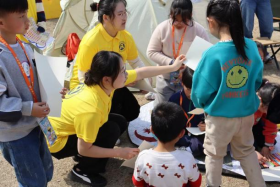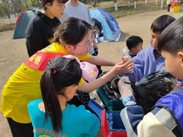 财金志愿者们协助小朋友们布置场地,搬运行李,摆桌子,搭帐篷,坐拥在一起相互普及垃圾分类知识,开展快问快答活动,在问答中彼此熟悉,树立正确环保理念。