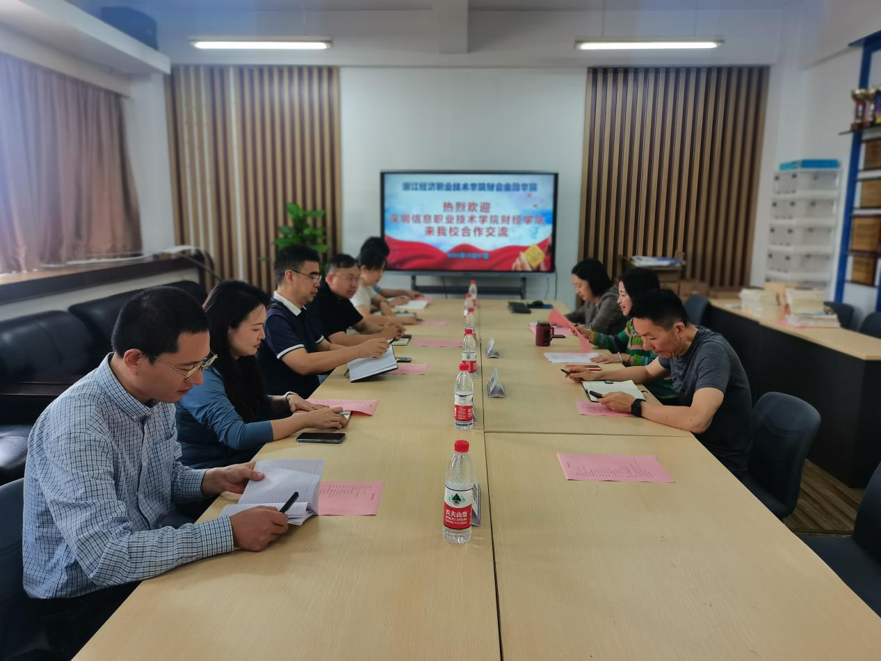 10月27日上午,深圳信息职业技术学院财经学院院长张立军、副院长赵根宏、财经学院行政办主任舒露瑶及相关教师来我院交流考察。财会金融学院党总支副书记、院长王茜,副院长崔玉江,大数据与会计专业相关专业教师在分院会议室进行了亲切的交流。