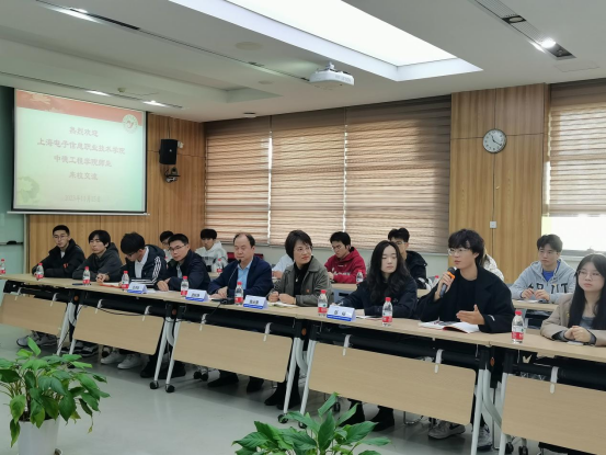 11月15日,上海电子信息职业技术学院中德工程学院党总支副书记孟秋静、副院长施云美、工会老师徐济陆、辅导员张裕,上海进博会“小叶子”志愿学生一行22人来我校交流学习。财会金融学院党总支副书记康粟丰、物流与供应链管理学院党总支副书记崔悦、辅导员董蓉蓉、张爽、李萌及16名亚运会“小青荷”志愿学生参与了座谈交流。