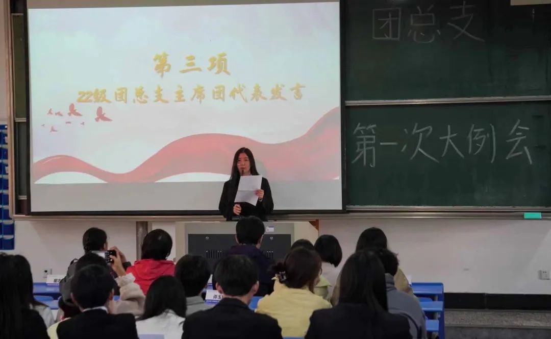 24届财会团总支书记助理竺莉芳上台发言,竺莉芳同学说道:“在未来的学习和生活中,可能会面临各种挑战和困难,但请相信,只要坚持努力,勇于迎接挑战,一定能够克服一切困难,收获成功和成长。改变和提升自己是一种持续的过程。在这个大例会上,希望大家都能勇敢面对自己的不足和挑战,勇于突破自我,追求更高的目标和更好的自己。相信自己的潜力,相信自己的能力,一定能够取得令人瞩目的成绩!”