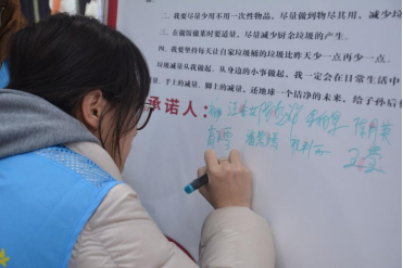 志愿者们在承诺书上郑重地签下自己的名字,承诺会从日常生活中的小事做起,对垃圾进行减量,还地球一个洁净的未来,给子孙后代留一片绿水青山。