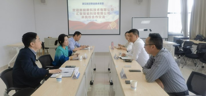 为实现“产教融合、协同育人”的目标,5月10日上午,财会金融学院牵头联合数字信息技术学院邀请新能数科(杭州)技术有限公司总经理陈帆与汇智智能科技有限公司工业互联网事业部总经理陈方林在我校进行交流。此次交流活动旨在就AI大模型项目和智能财务分析项目、工业AR项目等领域展开合作,促进产业与教育的深度融合。