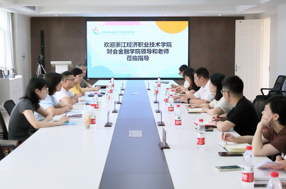 为深入推进我省中高职一体化人才培养改革,通过联合修订一体化人才培养方案和有效教学实施,构建中高职相互衔接递进的课程体系、教材体系、实训体系,充分整合资源,实现高素质技术技能型人才培养质量的有效提升。6月28日,财会金融学院供应链金融研究所副所长单松、大数据与财务管理专业主管谢瑶华、大数据与财务管理专业教师宋波、郑伟、大数据与会计专业教师杨婷婷一行赴萧山区第三中等职业学校开展考察交流。萧山区第三中等职业学校副校长潘志军等热情接待。