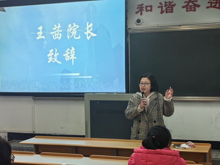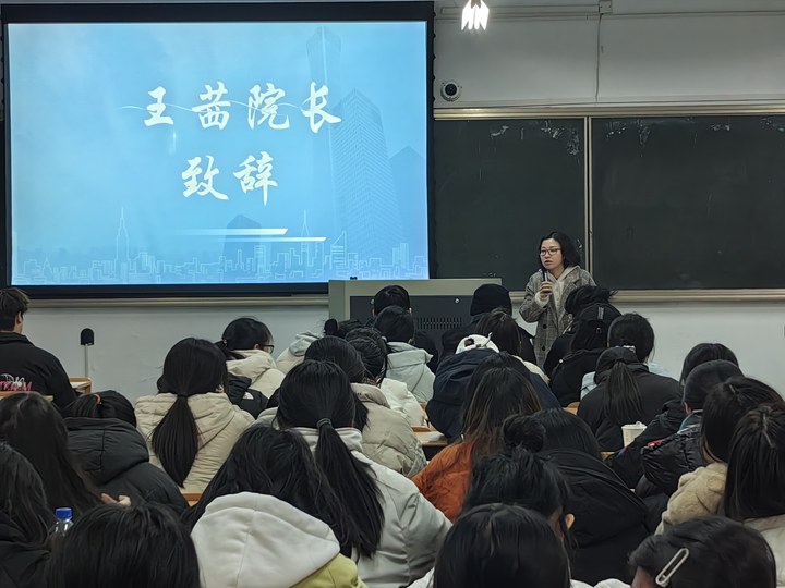 20241229日晚,财会金融学院在黄泽楼分三个批次召开2024级初级会计资格考试备考动员大会。财会金融学院院长王茜、供应链金融研究副所长单松、大数据与会计专业余茜茜老师、2023级优秀学生代表以及2024级大数据与会计、大数据与财务管理专业近400名学生参加了会议。