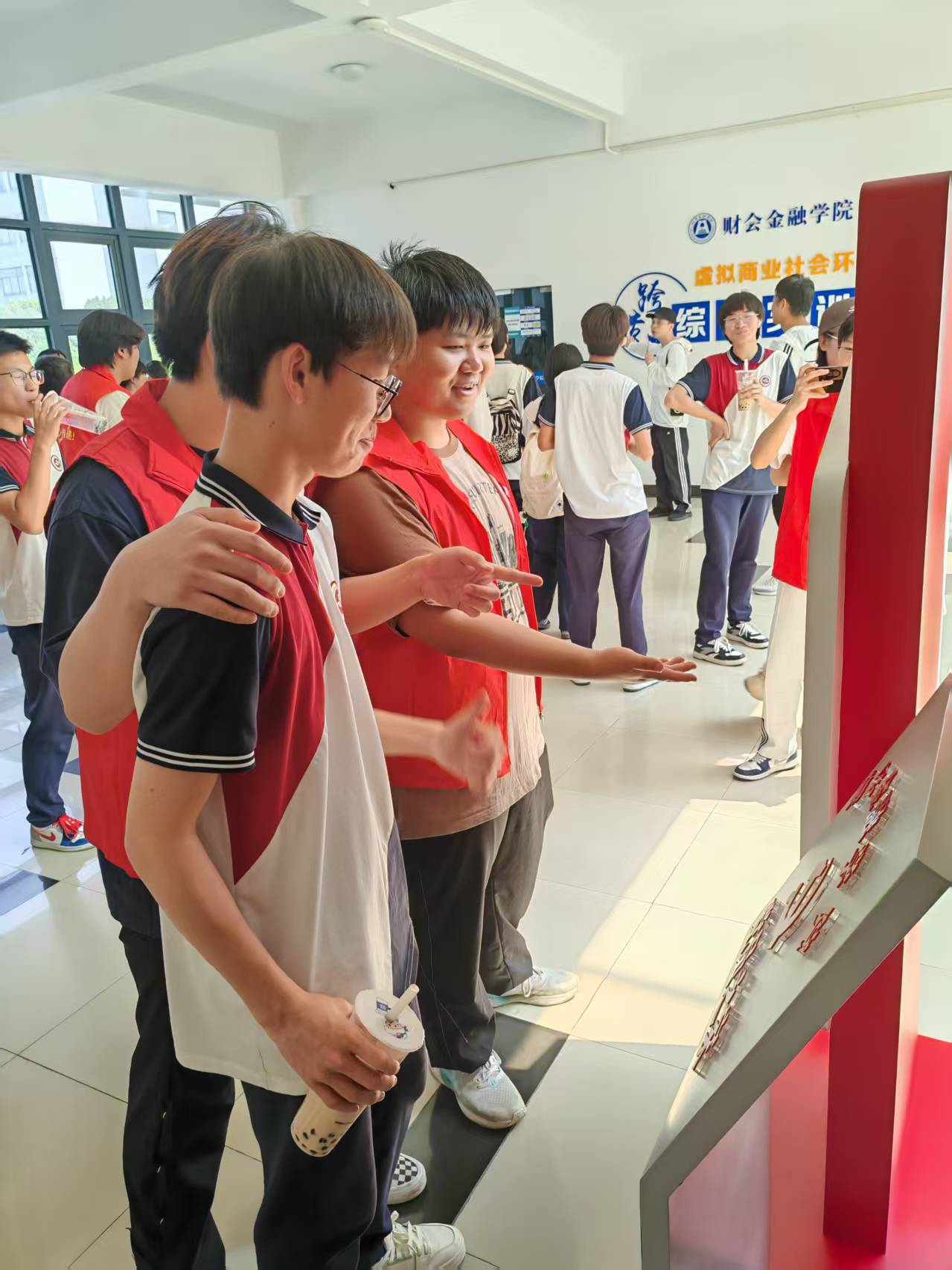 在实训室观摩环节,大数据与财务管理专业的实训场景成为亮点。现代化设备、真实的业务模拟操作,展现出专业学习的深度与广度,为师生们带来了一场专业知识与实践结合的视觉盛宴。同学们围在实训设备旁,不时提出疑问,老师与8名志愿者学生耐心解答,现场互动热烈,知识的火花不断碰撞。
