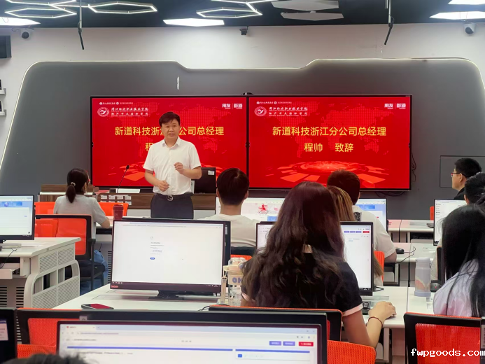 新道科技浙江分公司总经理程帅代表企业方致辞。他强调,顾问班为在校生提供了接触真实企业、真实项目、真实产业需求(用友集团及生态企业)的宝贵平台。他鼓励学员积极向企业导师和学校老师学习,深入钻研企业案例与产品,实现学有所成、学以致用。