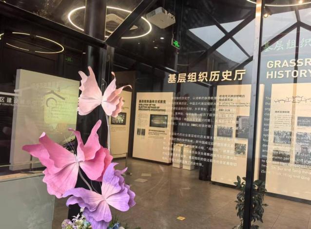 中国社区建设展示中心是一家展示我国社区建设成果的专题性陈列馆。党员和入党积极分子随着专业的讲解,透过浮雕、影像、沙盘和历史实物看我国从奴隶社会的邑一直发展至今的基层组织演化历史,看新中国成立后城市居民委员会的创建与发展、基层组织选举方式的演变,以及在浙江成立的新中国首个居民委员会——杭州市上羊市街居民委员会的历史,全方位、多角度地体会中国人民基层治理的智慧。