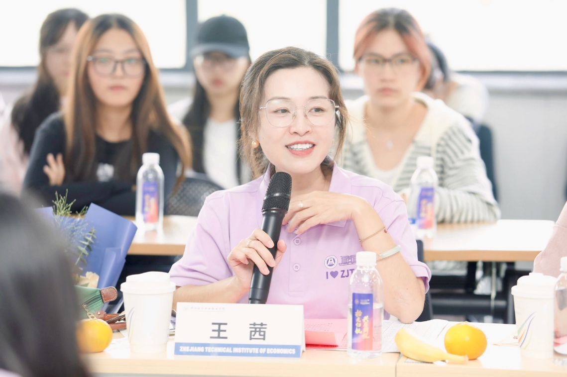 本次活动的重头戏——校友座谈会环节特邀五位杰出校友分享成长经验。2013级数字财经学院校友分会副会长、浙江极氪智能科技有限公司财务核算经理方秋红分享了财务核算方面的经验与技巧;1996级浙江原爱贸易有限公司总经理周胜亚分享了他的职场经历和心路历程;2003级浙江求德律师事务所律师沈青青以从校园到法庭的跨越为主题,讲述了法律人的职业坚守;2012级浙江高诚融资担保有限公司副总经理戴嘉文分享了金融路上的坚持与突破;2012级创市(苏州)私募基金管理有限公司总经理周浩男则畅谈投资视野下的职业规划。现场互动环节气氛热烈,在校生踊跃提问,校友专业细致的解答赢得阵阵掌声。