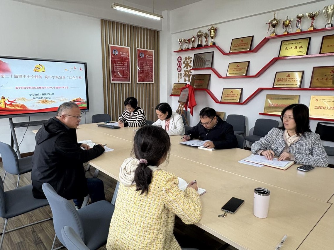 此次学习会进一步统一了思想、明确了路径,为学院高质量发展注入了强大动力,接下来将以党的二十届四中全会精神为指引,在学校党委的坚强领导下,坚定信心、锐意进取、扎实工作,不断谱写数字财经学院高质量发展的新篇章,为服务中国式现代化和浙江“两个先行”建设贡献智慧和力量!(作者:柯甜)