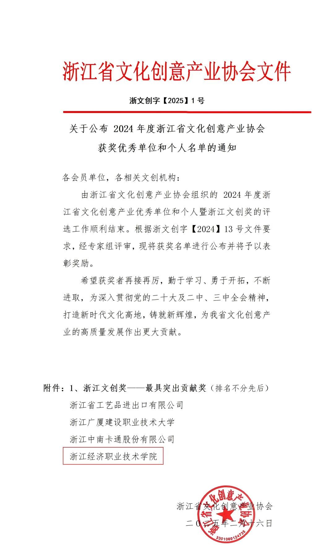 【喜报】 我校荣获2024年浙江省文化创意产业最具突出贡献...