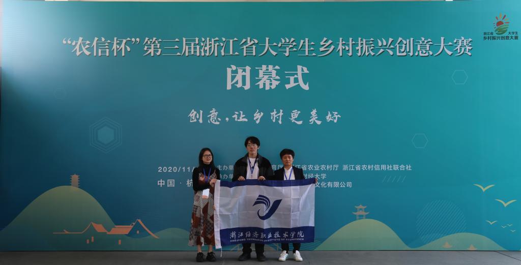 11月11日,由浙江省教育厅、浙江省农业农村厅、浙江省农村信用社联合社、浙江省大学生科技竞赛委员会联合主办的浙江省第三届“农信杯”大学生乡村创意大赛在浙江工商大学落下帷幕。我校参赛团队斩获专项赛金奖2项、银奖2项、铜奖1项及主体赛招标村赛道铜奖1项的喜人成绩。