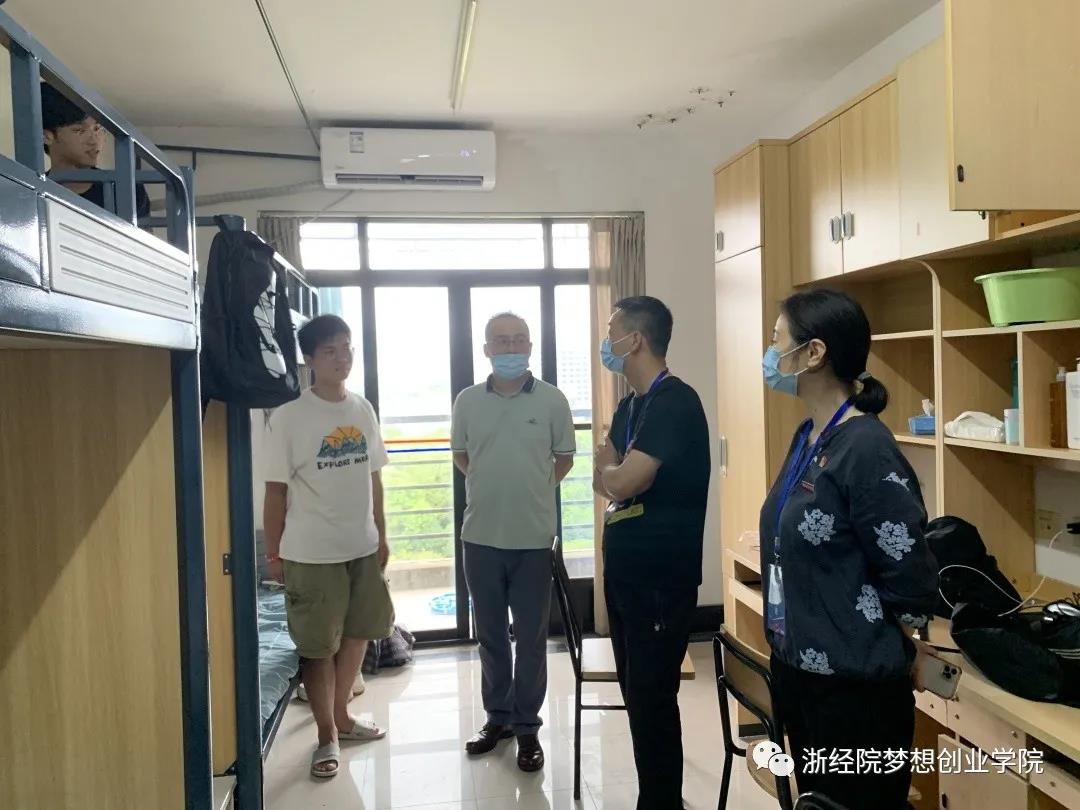 新生们踏进校门,热情的志愿者们就接过大家手中的行囊,帮助新生搬运行李,引导他们去报到点和生活区。梦想创业学院的每一个学生志愿者都用最饱满的精神为2021级新生做好服务。常态化疫情防控形势下,学校采取有力举措确保全体学生生命安全和身体健康。进入校园前,人员扫码、行李消毒,新生需出示《录取通知书》和“经院通行码”,方可进入校园。新生进入校园后,到各二级学院“一站式”报到点签到。报到当天下午,梦想创业学院院长王细红、副院长陈秋华带领辅导员及新生班主任们一起走访了新生寝室。