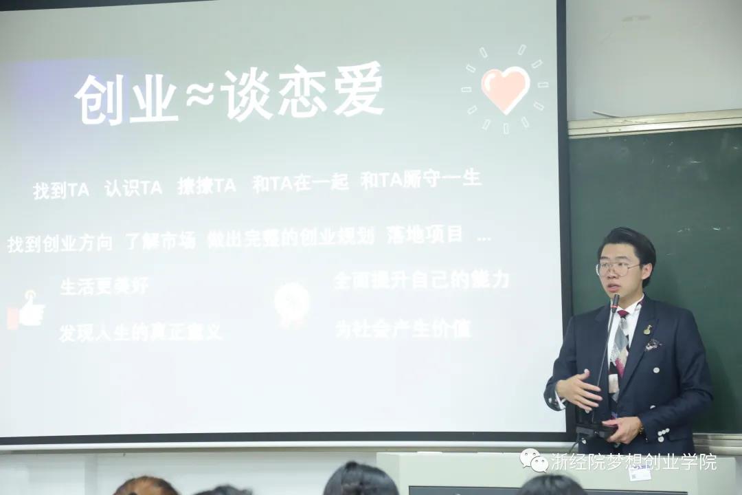 优秀创业学生代表P800119班陈晨获得了浙江省“互联网+”创新创业大赛金奖、浙江省新苗人才计划等诸多奖项。在讲座中,为了加深大家对创业的理解,陈晨学长用谈恋爱将创业与其对比,引出了许多案例,引起了新生们的强烈反响,通过陈晨的介绍,新生们了解了商业计划书的构成以及意义所在,了解了市场分析的必要性与商业模式的重要性。