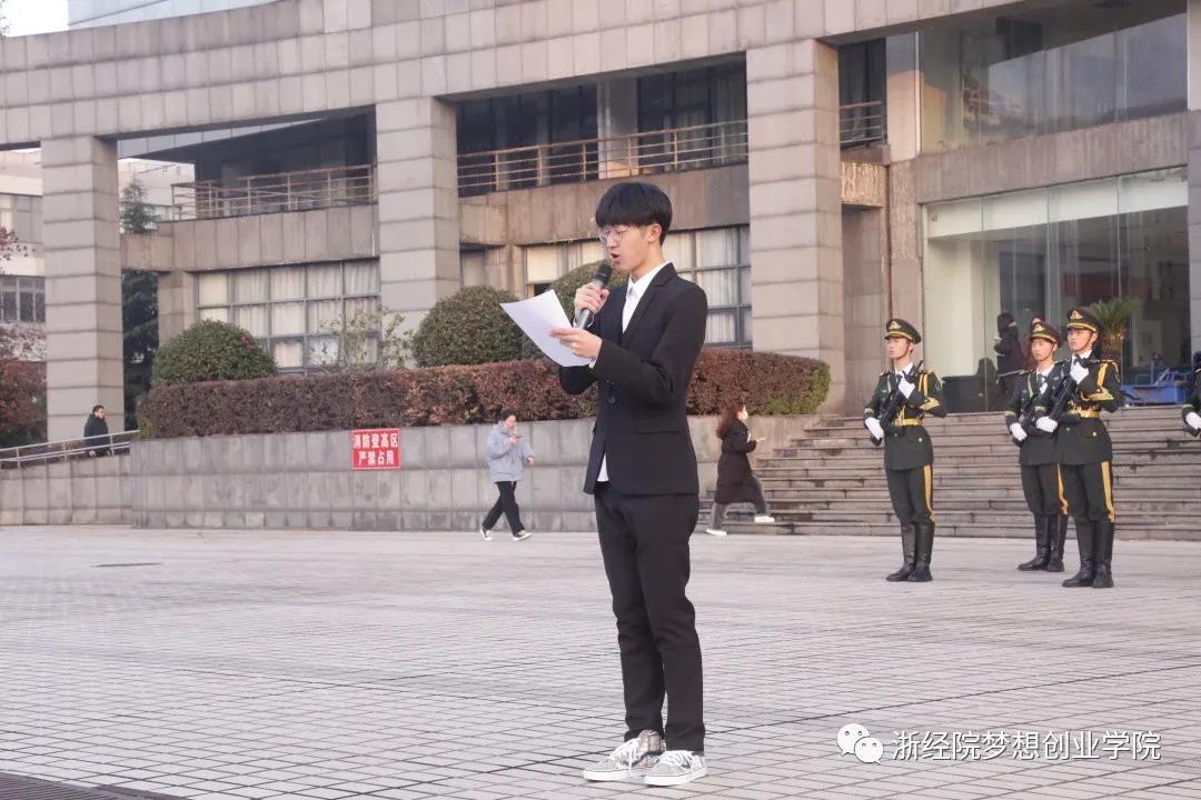 12月13日上午,梦想创业学院师生在至善广场举行了升旗仪式。本次升旗仪式的主题为“学法立行,守法做人”。因为疫情防控要求,本次升旗仪式线上线下同步进行。