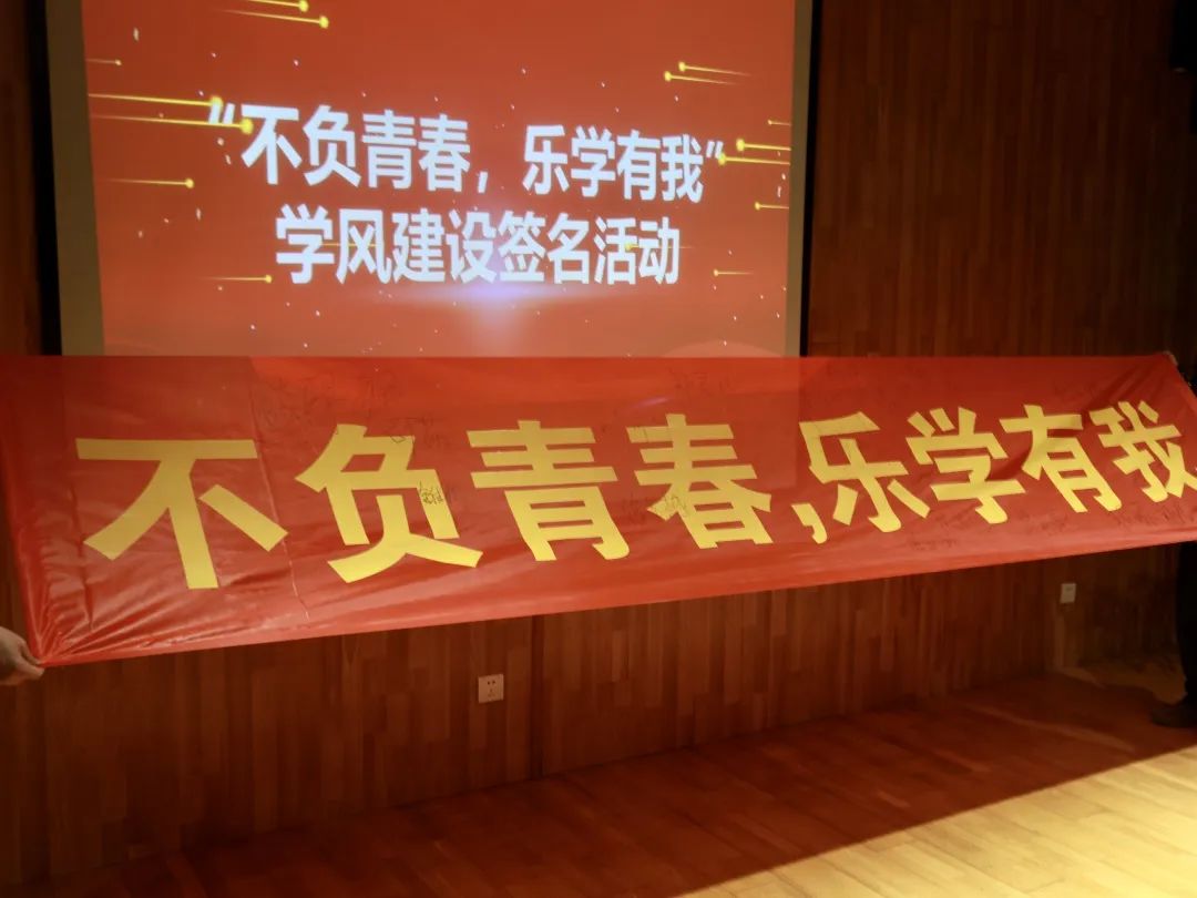 活动最后,同学们在“不负青春,乐学有我”的横幅上郑重签名,以此激励自己不断进取,积极参与学风建设。此次动员大会的顺利举行,拉开了以“不负青春,乐学有我”为主题的学风建设活动序幕。我院将继续坚持“为党育人,为国育才”的初心使命,不断加强学风建设,力争多方面多渠道全方位培养学生综合素质能力,促使我院学子在健康向上的优良学风中成长成才。