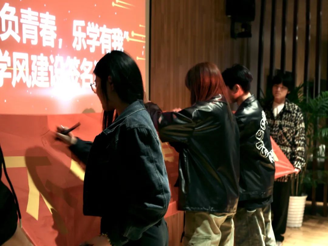 活动最后,同学们在“不负青春,乐学有我”的横幅上郑重签名,以此激励自己不断进取,积极参与学风建设。此次动员大会的顺利举行,拉开了以“不负青春,乐学有我”为主题的学风建设活动序幕。我院将继续坚持“为党育人,为国育才”的初心使命,不断加强学风建设,力争多方面多渠道全方位培养学生综合素质能力,促使我院学子在健康向上的优良学风中成长成才。