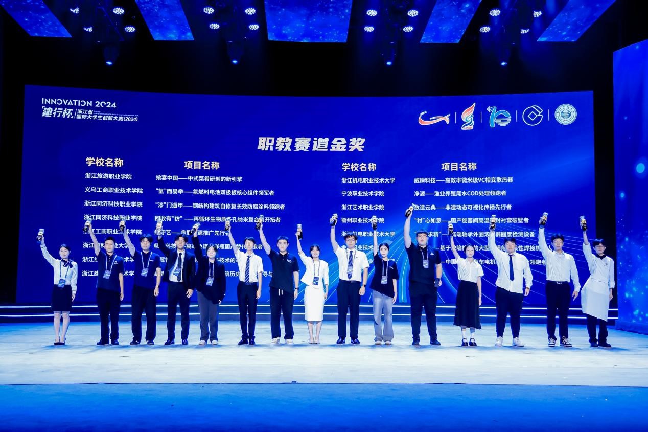 本届大赛以“我敢闯,我会创”为主题,以“更浙江、更国际、更教育、更全面、更创新、更协同”为目标,吸引了全省113所学校、5.19万个项目、39万人次报名参赛,项目内容涵盖新工科、新医科、新农科、新文科、人工智能+等多个领域,最终560个项目入围省级决赛。经过激烈角逐,由物流与供应链管理学院张妮佳等老师指导、张润泽等同学负责的《万翼智联——引领工业网关技术的革新者》在职教赛道创意组斩获金奖;由教务处周鹤婷等老师指导、包涵等同学负责的《绿动智测——中国新能源汽车电机智能检测行业领跑者》在职教赛道商业组中斩获中脱颖而出,以小组第一的成绩夺金;由工商管理学院曾菁惠等老师指导、李耀立等同学负责的《宁焱智温——国内首创基于无氢纳米级稳定包覆技术的智能自发热器》项目在职教赛道创意组中取得银奖。