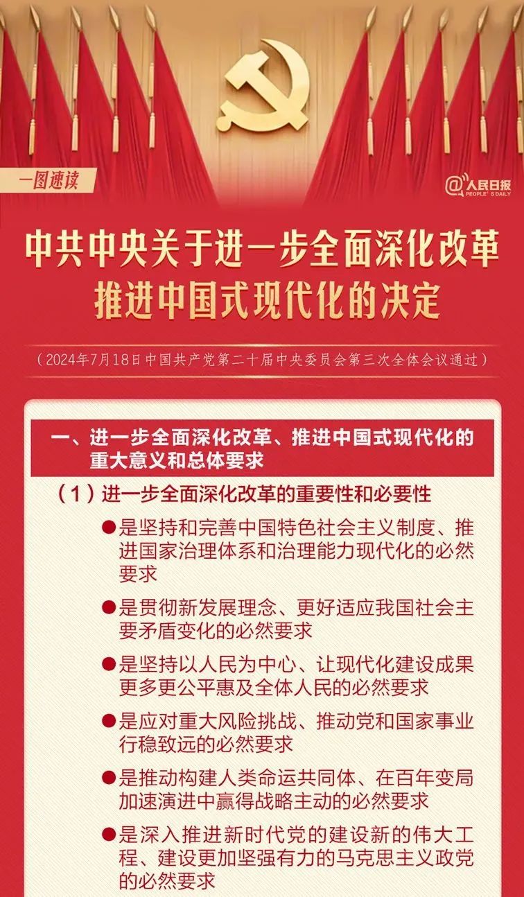 中国共产党第二十届中央委员会第三次全体会议审议通过《中共中央关于进一步全面深化改革、推进中国式现代化的决定》。