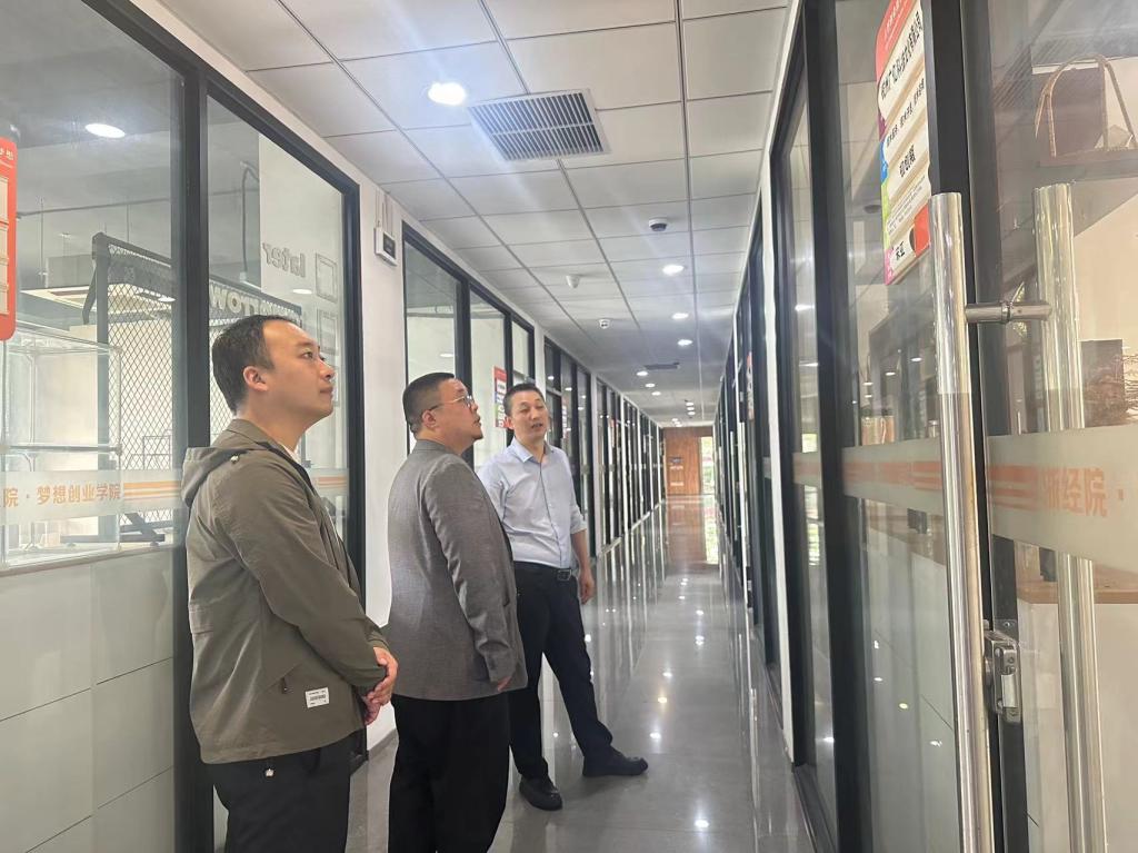 赵星伦一行先后参观了学院创业展示区、创业教育区、创业孵化区、创业路演区以及创业园区等学院各功能区。他们在创业园区详细询问了学生企业的经营方向、营销方式、团队建设等情况,对我校的双创教育成果和竞赛成绩给予了高度评价。