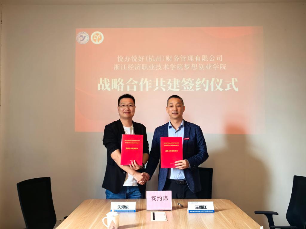 2024年11月13日,梦想创业学院与校友企业悦办悦好(杭州)财务管理有限公司举行校企合作签约仪式。我校创业校友悦办悦好(杭州)财务管理有限公司董事长沈海俊、总经理戚丽娜,梦想创业学院院长王细红、副院长陈秋华、张颖参与了本次活动。