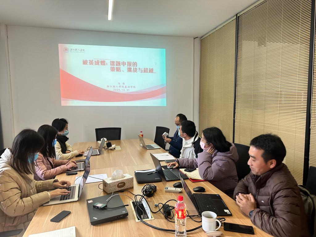 12月31日下午,梦想创业学院开展有组织的科研活动,邀请浙江树人大学基础学院、国际教育学院副院长冯伟为全体教师带来了一场以“破茧成蝶:课题申报的挑战与超越”为主题的精彩讲座。
