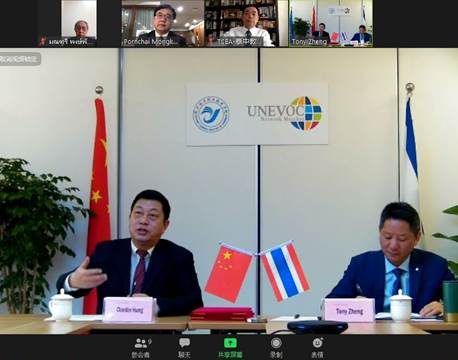 Sino-Thai Educational Cooperation Conference was held online in the morning of March 17, 2021, leading by Thailand-China Educational Alliance. Principle of Siam University, Dr. Pornchai Mongkhonvanit, secretary of principle, Mr. Yhing Sawheny, president of Thailand-China Educational Alliance, Mr. Montree Pongpan, honorary president of Thailand-China Educational Alliance, Mr. Wu Zhiyi were presented in the conference, Vice-President Chunlin Huang and director of foreign affair office, Gangqiang Zheng attended the meeting, representing ZJTIE.