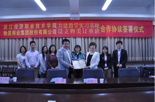 为进一步深化校企合作,我校管理技术学院工商企业管理专业与物美商业集团股份有限公司共建教学实习基地、设立物美订单班。2014年5月16日上午,合作协议签署仪式在管理技术学院会议室举行。物美商业集团股份有限公司华东总部人事总监龚晓丹女士、招聘经理陈亮先生与朱文敏女士、上海物美商业投资发展有限公司杭州下沙店人力资源部经理徐雪萍女士及学校黄春麟副校长、管理技术学院吕超院长、徐晓玲书记、张秋埜副院长、工商企业管理专业负责人林宏老师及专业教师出席了此次签约仪式。