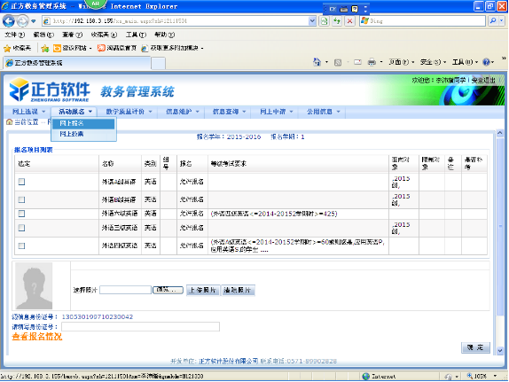 2、进入“学生网上报名”模块,在“报名项目列表”中,选择报名类别。