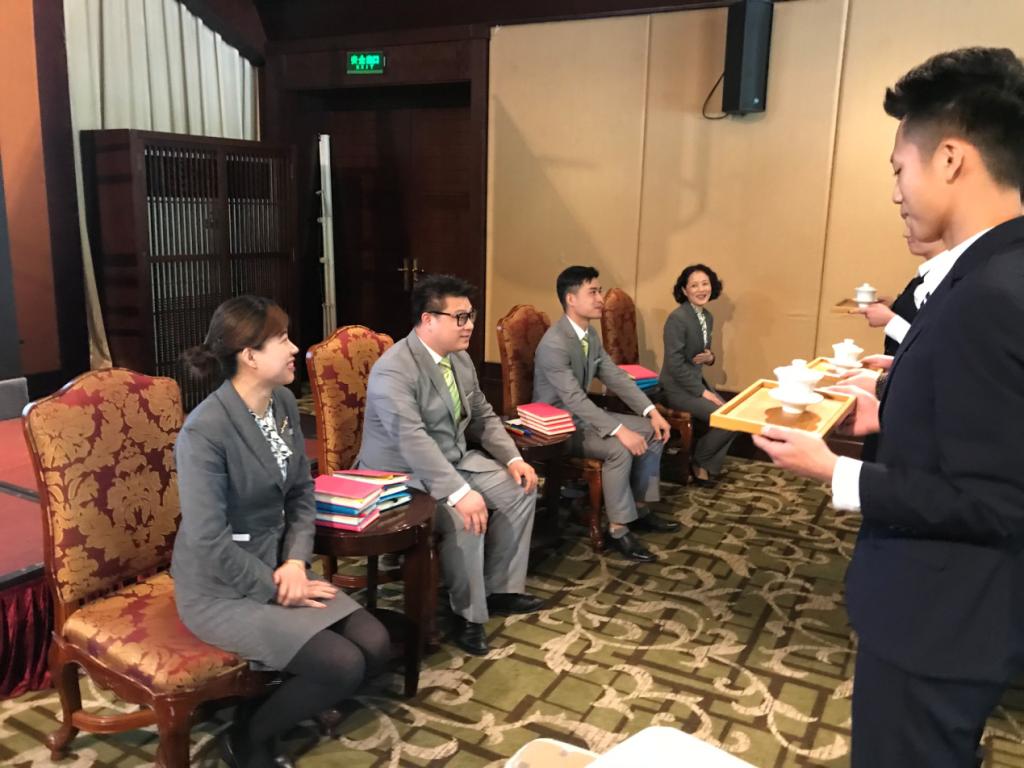 活动结束后,雷迪森旅业集团龙井庄园酒店总经理蒋增红先生与学员们展开友好讨论,就学员提出的问题,蒋增红先生给出明确回答,他表示:一、庄园酒店人才与其他酒店人不同,庄园酒店人才更加多面、全能,同时提倡“一职多能”,他鼓励学员在现下好好学习,充实自己,并与时俱进。二、随着互联网的发展与社会资源公共化,酒店也需紧跟潮流,做到多方合作,合作共赢。