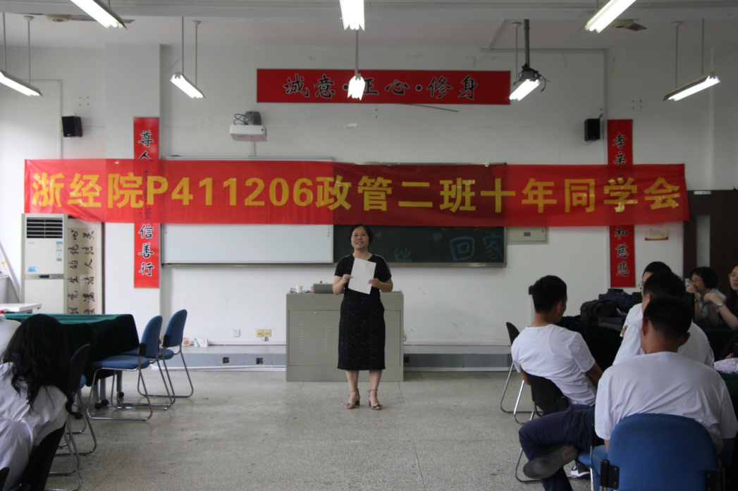 班会在班长李洋的主持下召开。首先,李洋校友表达了自己对于母校的思念,并且简要讲述了自己这10年的心路历程,他表示,10年间,学校发生了翻天覆地的变化,自己也从为人子变成为人父,从对社会一无所知的“愣头青”变成了深谙社会发展的“老油条”。徐晓玲书记肯定了这些年校友们的成长,并向校友们介绍了学校这10年的变化,她感叹,时代在不断的变化,而母校也在不断的进步,母校的大门永远为身在各方的校友们敞开怀抱。曾经的任课老师张星也向校友们讲述了这些年自己的一些人生感悟,他希望校友们不管在职场上面临怎样的艰难困苦,家是自己的底线,无论在外多忙,一定要兼顾好家庭。