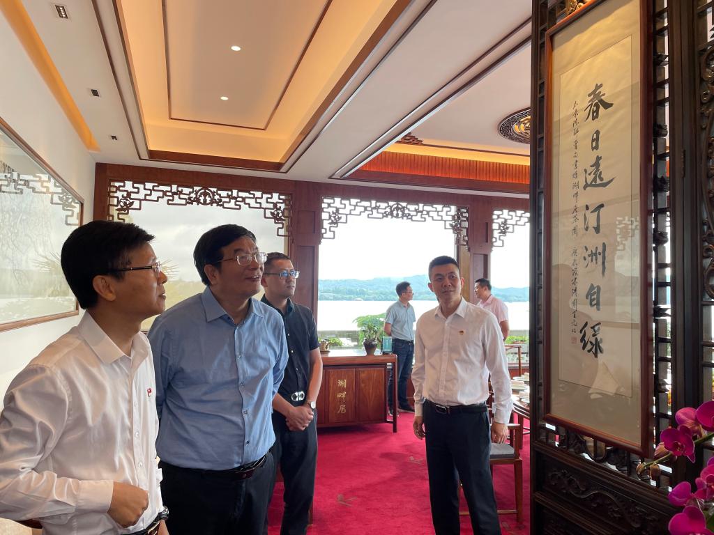 在杭州湖畔居茶楼有限责任公司党委书记、董事长沈立的陪同调研下,校长邵庆祥一行人参观湖畔居茶楼的展厅和设施,欣赏名人书画真迹,体验特色茶产品和文创产品,深入了解湖畔居产业模式、发展规划和校企合作等情况。
