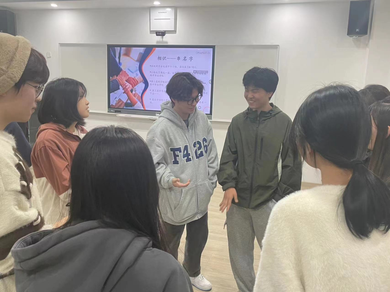 在罗老师的带领下,各位同学都非常投入,现场气氛欢快活跃,笑声不断。期间还开展了相识串名字、相知和我一样、相聚群龙取水三个互动游戏,同学们在互帮互助中加深了情感交流,学会了如何与他人建立良好的关系。在活动中通过互动、分享和倾听,逐渐建立起信任和理解。这让我们意识到,与他人建立良好的关系,需要尊重、理解和包容。