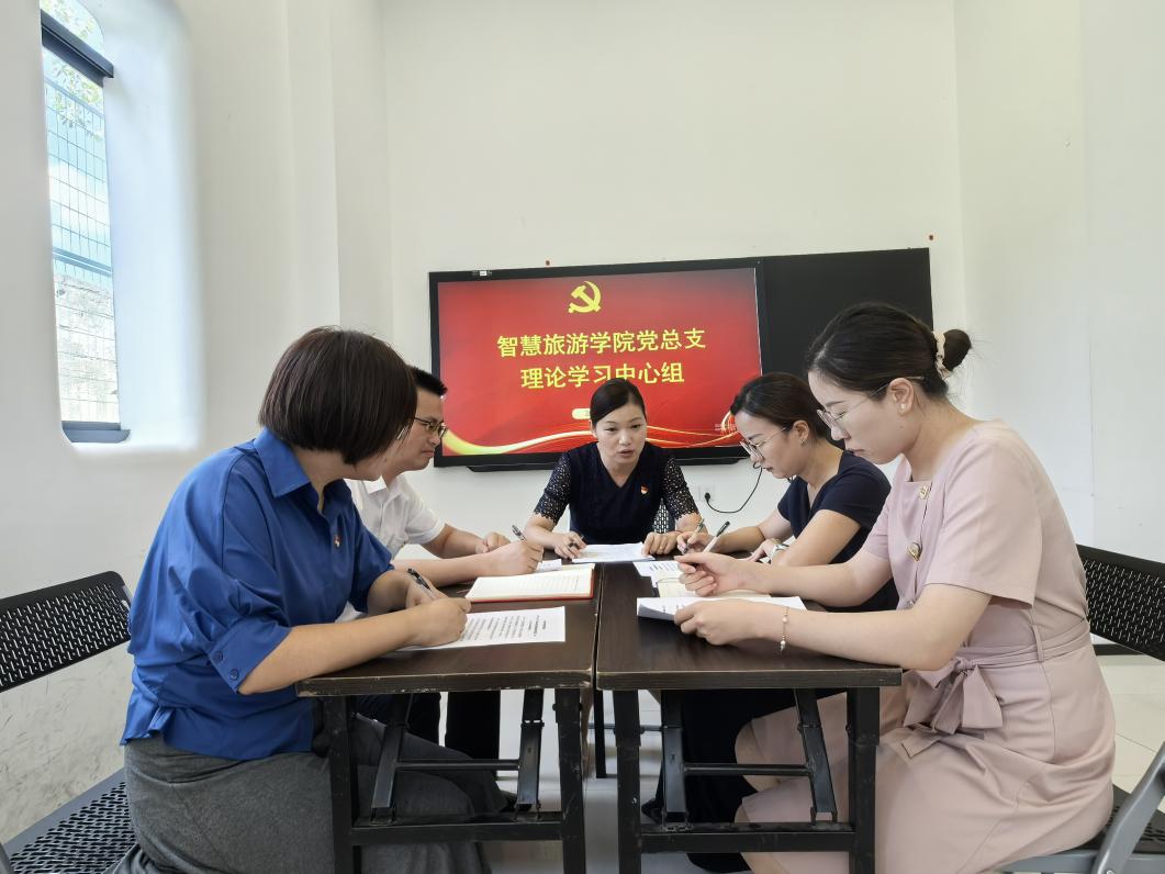 为持续强化党的创新理论武装,8月14日下午,智慧旅游学院在空乘实训室8101召开理论学习中心组学习会议,学院领导班子、党总支委员参加此次会议,会议由智慧旅游学院党总支书记、执行院长崔悦主持。