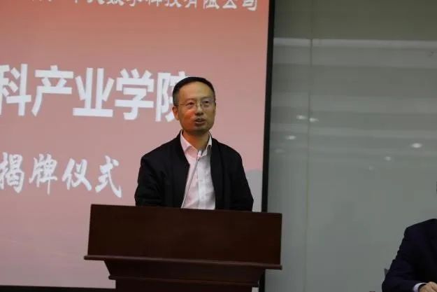 黄春麟副校长与何军炎副总经理共同签署了合作协议书并为产业学院成立揭牌。