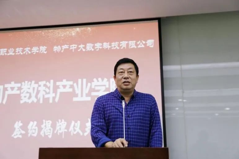 数字信息技术学院院长罗剑介绍了物产数科产业学院前期筹建工作,并就产业学院下一步工作思路做了汇报。