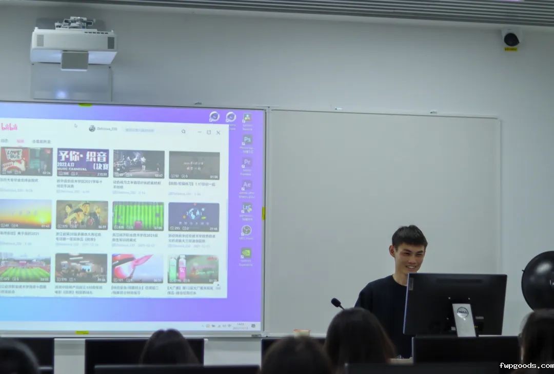 首先学长向同学们展示了他三年来的作品以及制作思路。告诉学弟学妹们剪辑视频可以根据背景音乐的节奏和快慢穿插素材,要对作品素材有一定的前期准备工作,还要对素材的准备有一定的目的性,根据自己想要呈现的的效果去运用合理的工具剪辑。