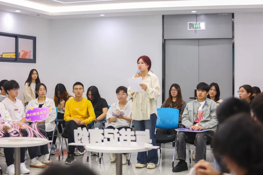 活动在破冰环节中温馨启幕,同学们被随机抽取说出老师的姓名和岗位,同时分享自己参与活动的初衷和期待;老师被随机指定说出一排学生的名字,瞬间拉近了彼此的距离,为深度交流营造了轻松融洽的氛围。随后的答疑环节,现场提问与前置提问交替进行,老师们一一作答。“恩怨情仇”环节将活动推向了高潮,“师生”“生生”关系的处理、合作与竞争、“为什么会这样”等现实议题抛出,展现了青年人直面问题、寻求共识的勇气与智慧。