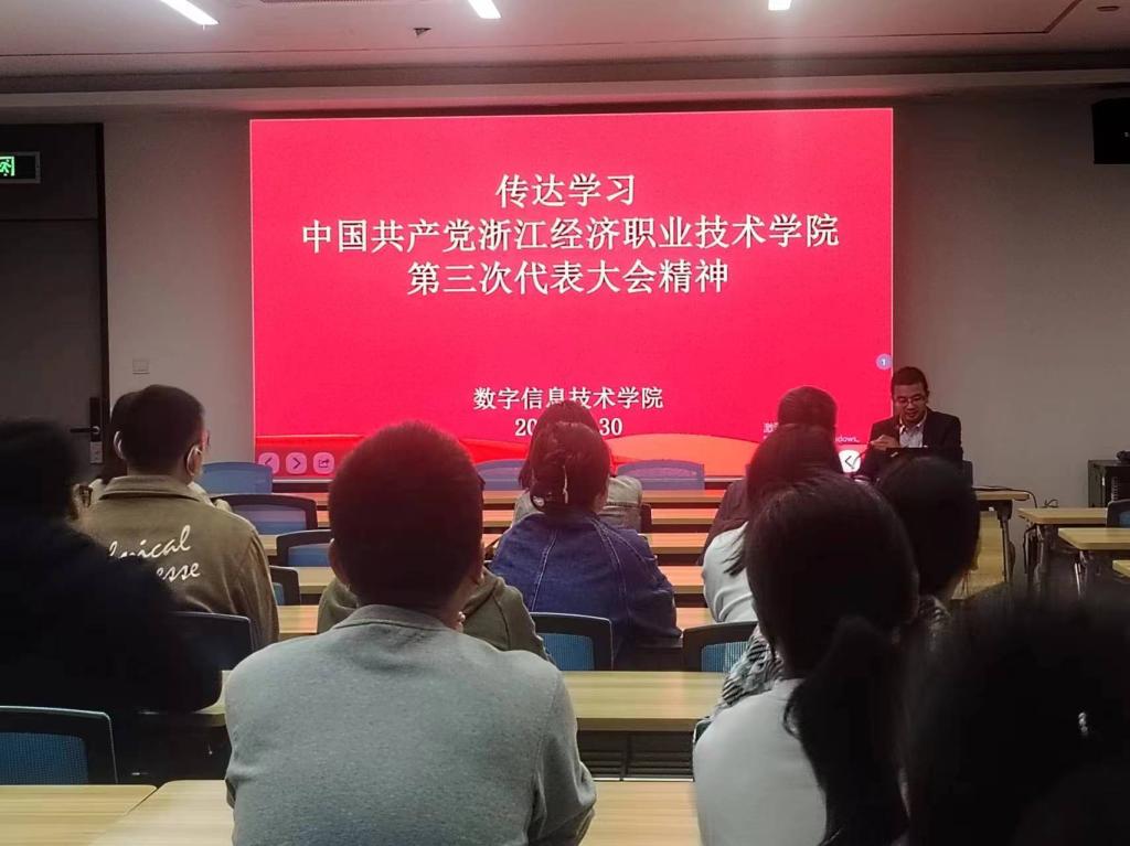 4月30日下午,我院开展专题传达学习学校第三次党代会精神会议,研究部署贯彻落实工作。会议由党总支书记楼建列主讲,全体教职工参会。