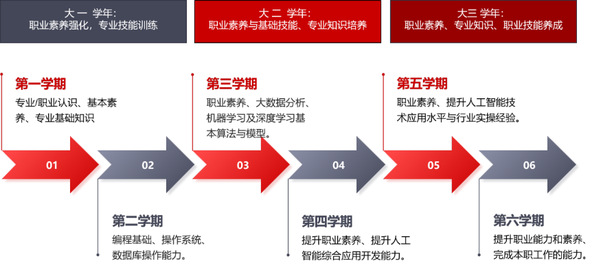 本专业对接浙江及长三角地区战略性主导和新兴人工智能产业中重点领域的人才需求,培养与社会主义现代化建设要求相适应的,具有良好的职业道德、文化素养、创新精神、工匠精神、创业能力和综合职业能力,具备人工智能技术的系统集成、运维、数据处理、分析等能力的德智体美劳全面发展的复合型高技能人才。